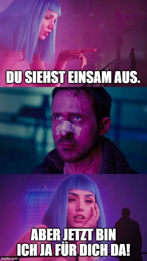 Das ist in unserer heutigen Zeit nicht gerade wenig, denn längst arbeitet sich das Nischenthema Einsamkeit ins öffentliche Bewusstsein vor. Nicht das Politik und Gesellschaft ernsthaft etwas dagegen tun würden, weshalb der Kapitalismus wieder einmal zuschlägt und Lösungen schafft.
